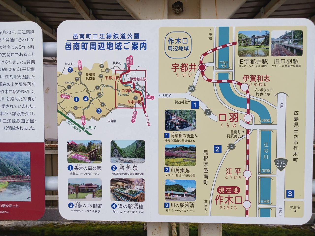 もみじたまご自販機と尾道自動車道に架かる長い橋 三次市の国道184号線